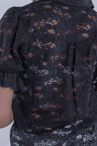 Blusa de encaje negra abotonada trasparente