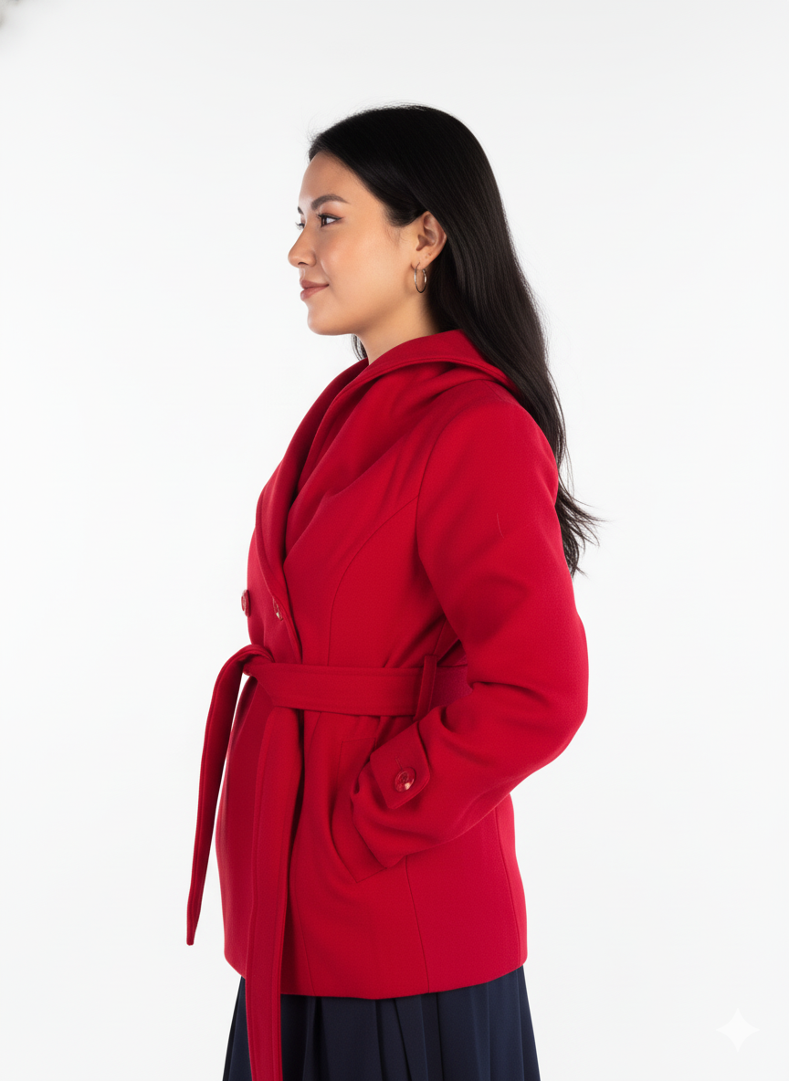 Este abrigo rojo abotonado combina elegancia y funcionalidad, diseñado para ofrecer un ajuste perfecto gracias a su cinto ajustable que resalta la silueta. Su color vibrante aporta un toque sofisticado y moderno a cualquier conjunto, ideal para mantener el estilo en temporadas frías. La confección de alta calidad asegura durabilidad y comodidad durante todo el día. #AbrigoRojo #ModaElegante #EstiloConfort #CintoAjustable #Tendencias2025