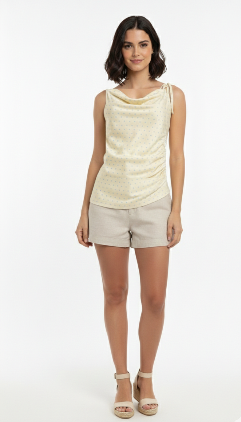 Blusa amarilla con detalle de bolitas azules