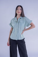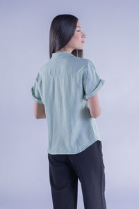 Esta blusa verde abotonada de manga corta es una prenda fresca y elegante, perfecta para los días cálidos. Confeccionada en lino, un tejido natural y transpirable, ofrece una comodidad excepcional y una textura ligera. Su color verde, en diversas tonalidades que van desde el verde esmeralda hasta el verde oliva, aporta un toque de frescura y vitalidad a tu look. El cuello clásico y la hilera de botones en la parte frontal le dan un aire pulido, mientras que las mangas cortas la hacen ideal para el verano. Combínala con pantalones blancos, faldas estampadas o jeans para un estilo casual pero sofisticado.