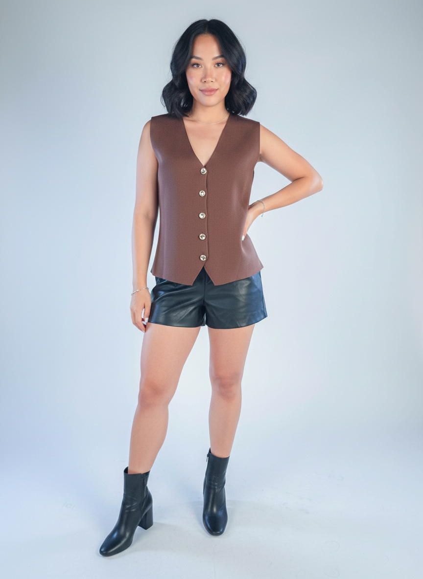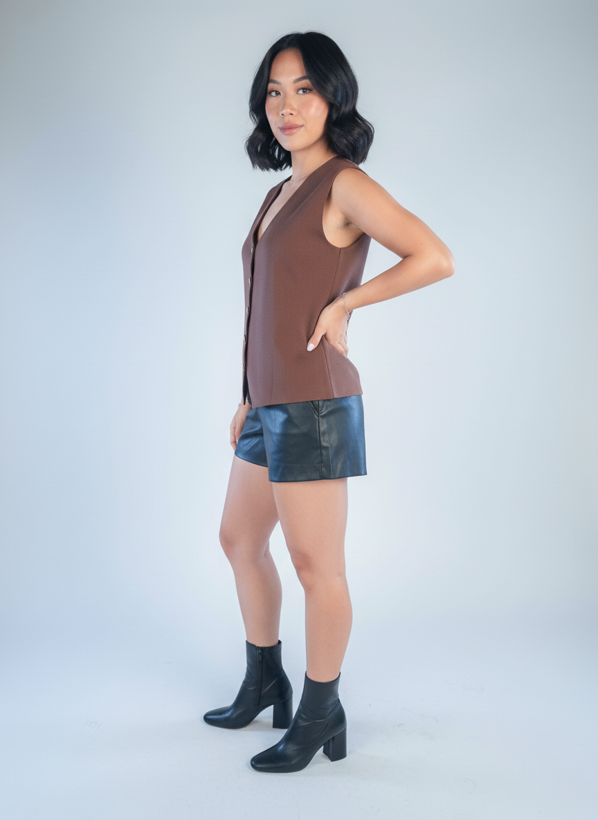 Chaleco cafe abotonado corte en V