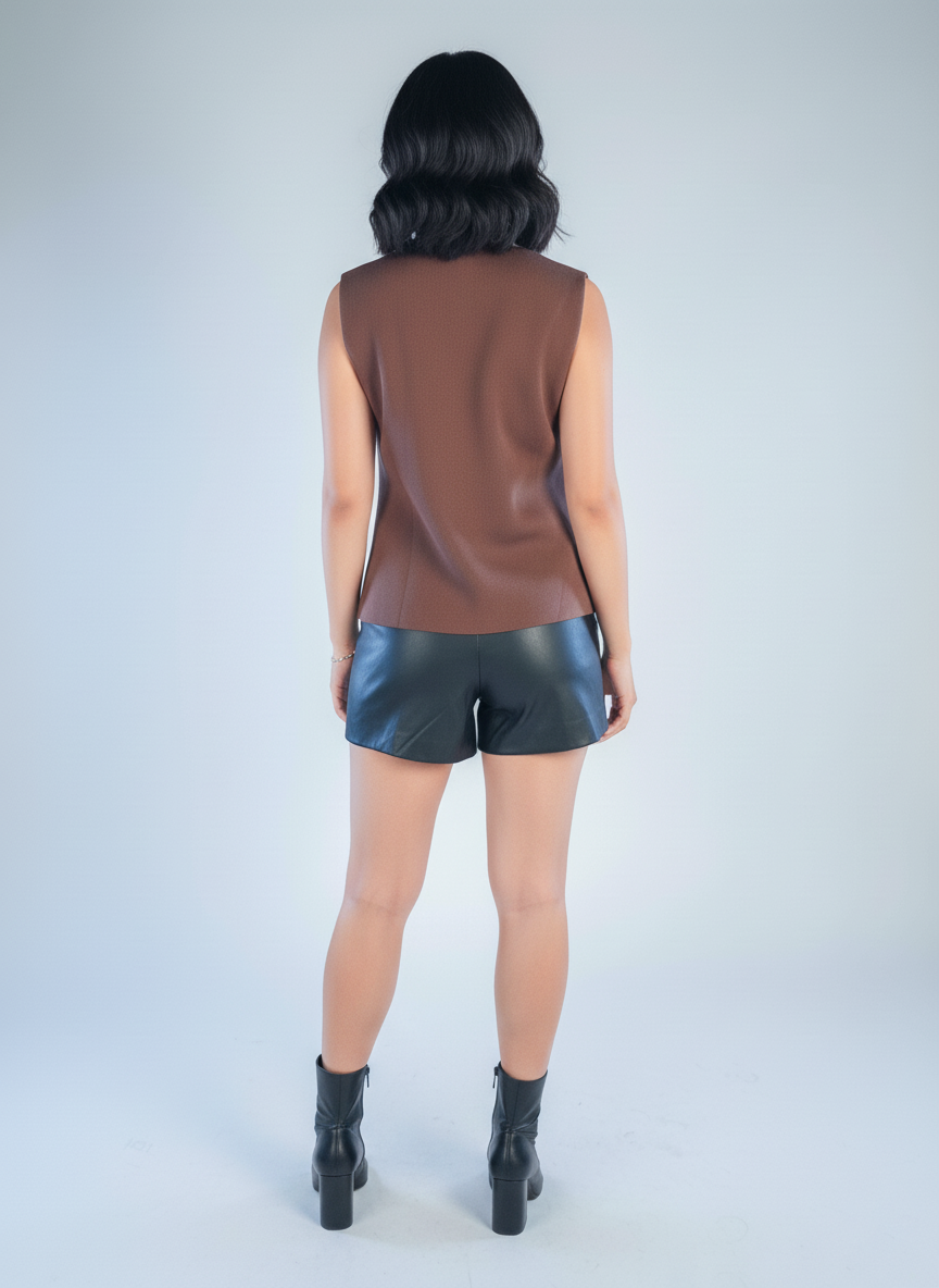 Chaleco café abotonado con corte en V que combina elegancia y versatilidad. Confeccionado en tela de calidad, este diseño clásico se adapta perfectamente a cualquier ocasión, desde looks casuales hasta más formales. El corte en V estiliza la silueta mientras que los botones frontales permiten ajustarlo según prefieras. Pieza imprescindible para crear outfits sofisticados y atemporales. #ChalecoCafé #ChalecoBotones #CortEnV #ModaFemenina #VestidoElegante #LooksVersátiles #EstiloClásico #MujerModerna #FashionEsencial #BocarosaStyle