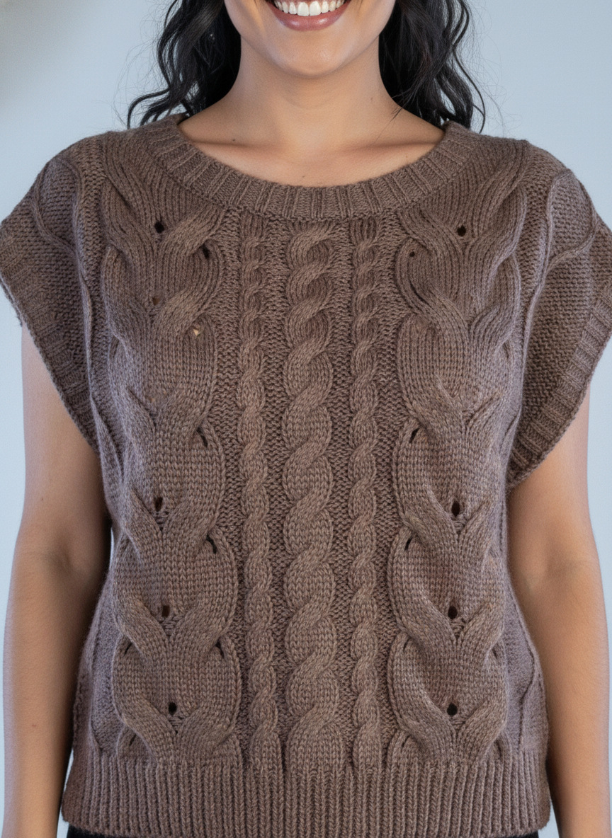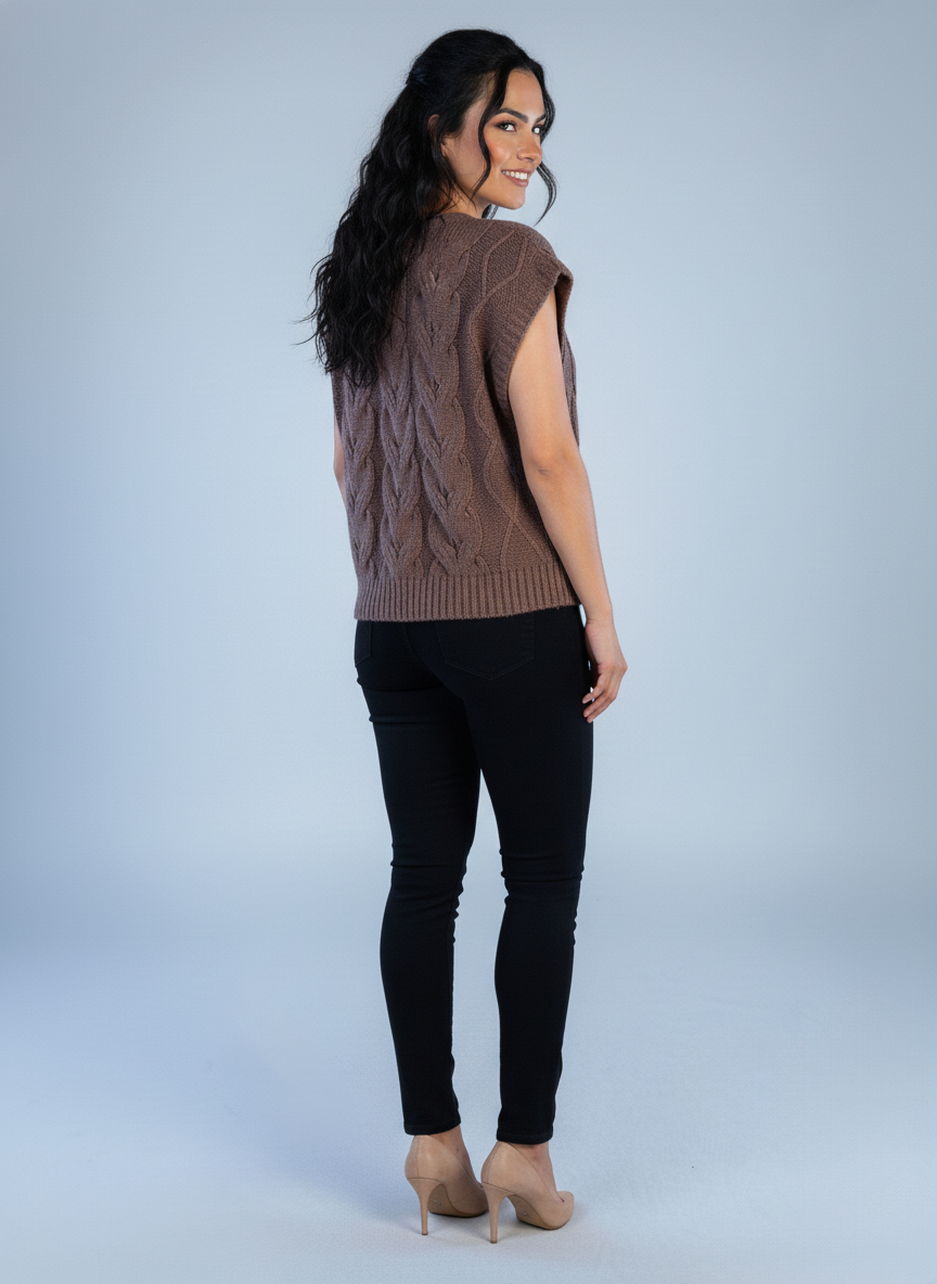# Descripción del Producto Chaleco tejido en café con un elegante patrón de trenzado que añade textura y sofisticación a cualquier atuendo. Confeccionado con técnicas artesanales de tejido, este chaleco combina comodidad y estilo versátil. Perfecto para capas en climas templados o como pieza central en looks casuales y semi-formales. Su tonalidad neutra lo hace fácil de combinar con diferentes prendas de tu guardarropa. --- # Hashtags Sugeridos #ChalecoCafe #ChalecotejidoMexico #ModaArtesanal #ChalecoCasual #TejidoTradicional #BocarosaStyle #ModaFemenina #ChalecoPerfecto #EstiloVersatil #TejidoMexicano #ChalecoCómodo #ModaConEstilo #PrendaEsencial #ChalecoCafé #LookCompleto