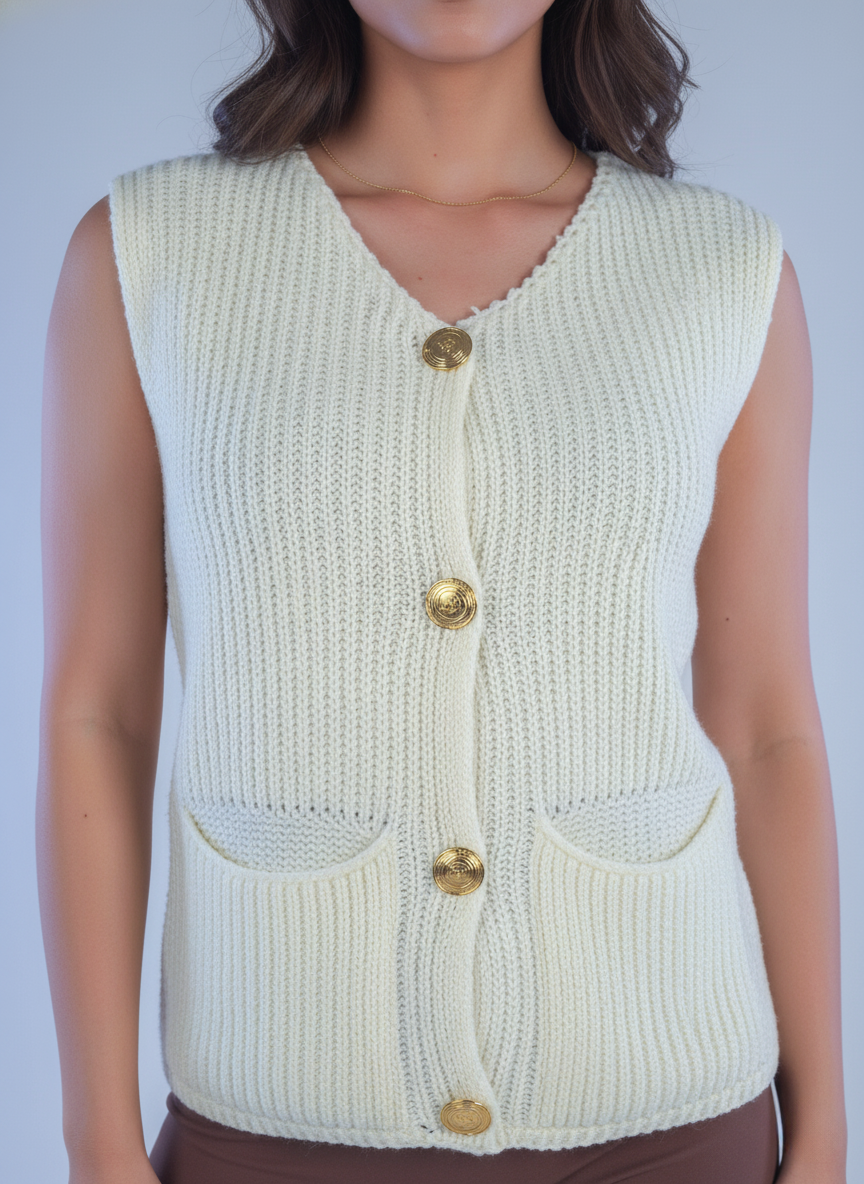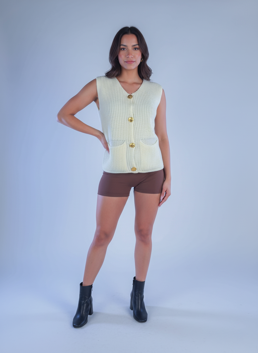 # Chaleco tejido abotonado con bolsas al frente Pieza versátil confeccionada en tejido de calidad que combina funcionalidad y estilo. Diseño abotonado que permite ajuste personalizado y facilita su uso sobre diferentes prendas. Las bolsas frontales ofrecen practicidad para guardar accesorios o mantener las manos cálidas. Ideal para crear looks casuales o semi-formales, adaptándose a diversas ocasiones y estaciones. Textura agradable al tacto que garantiza comodidad durante todo el día. #ChalecoBotones #ChalecoBolsas #ChalecoBolsillos #ModoTejido #VestimentaTejida #ChalecoCasual #EstiloVersátil #PrendaEsencial #ChalecoPerfecto #ModaMexicana #BocarosaStyle #ChalecoDeTejido #LookCompleto #PrendaComodidad #ChalecoPráctico