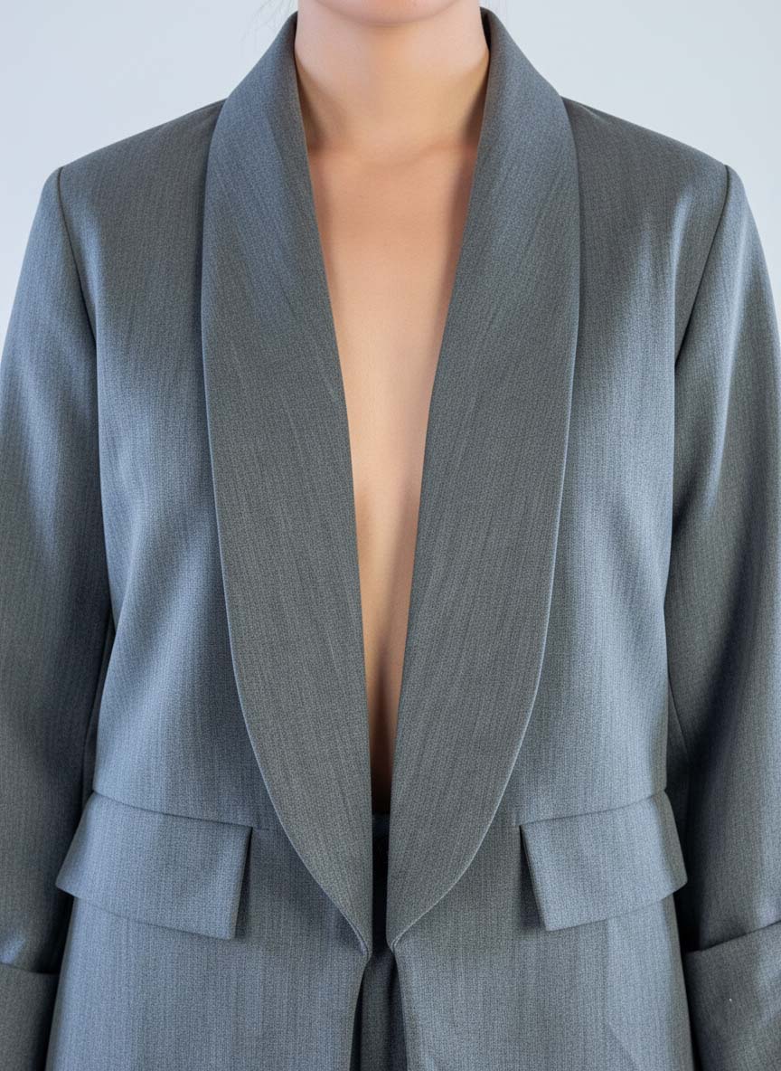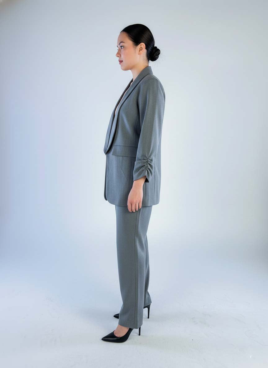 Conjunto de vestir gris de saco con solapa y pantalón