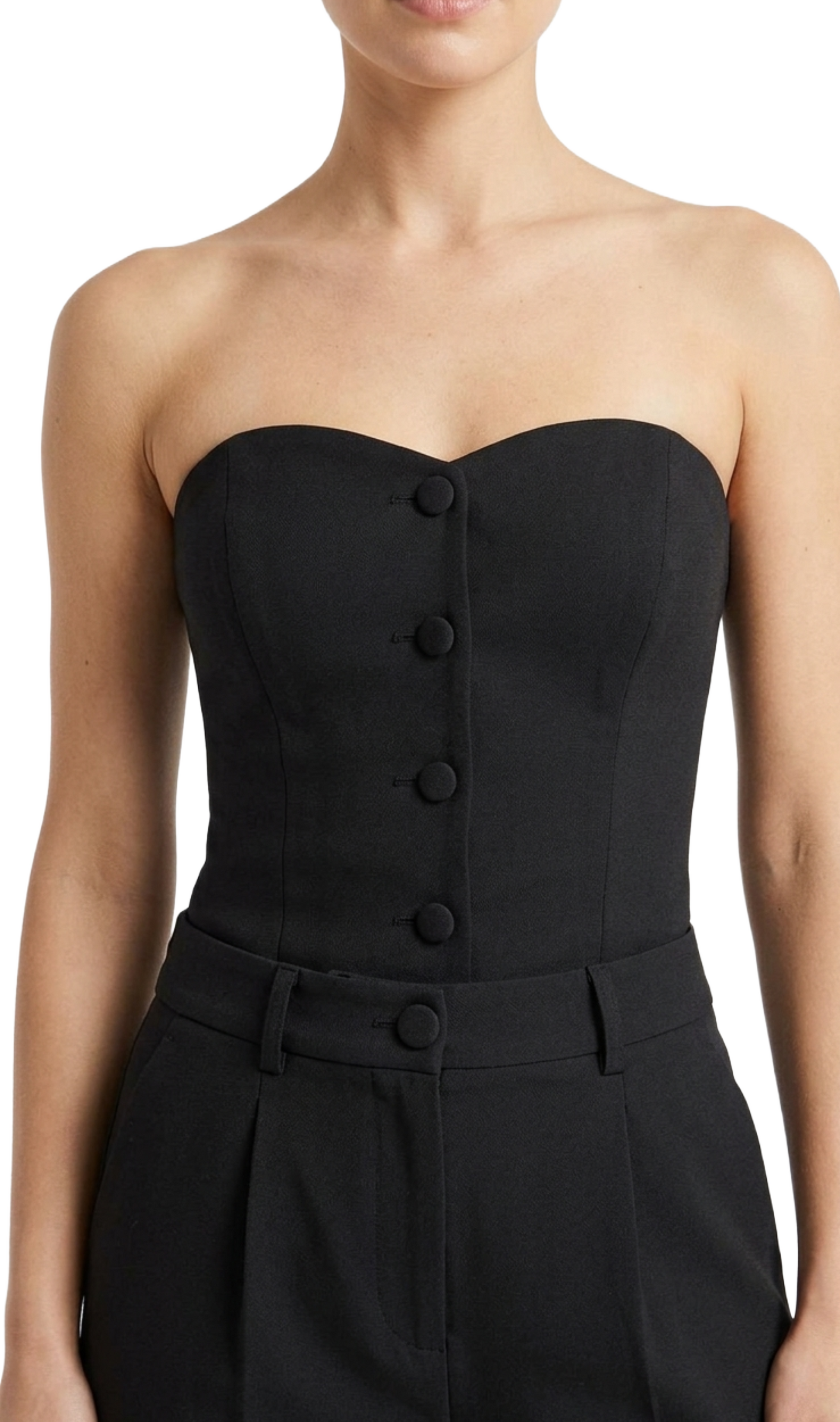 Conjunto negro de dos piezas de straple y pantalón de vestir con pinzas