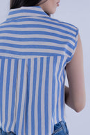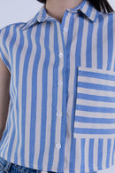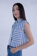 Eleva tu estilo casual con este moderno crop top abotonado, que destaca por sus frescas rayas azules y un toque funcional con una pequeña bolsita en el pecho. Las rayas azules, ya sean finas o más pronunciadas, le confieren un aire náutico y veraniego, perfecto para los días soleados. El diseño abotonado en la parte frontal no solo añade un detalle chic, sino que también permite un ajuste personalizable, mientras que la práctica bolsita en el pecho le da un aire desenfadado y juvenil. Ideal para combinar con faldas de tiro alto, pantalones cortos o jeans para un look relajado y a la moda.