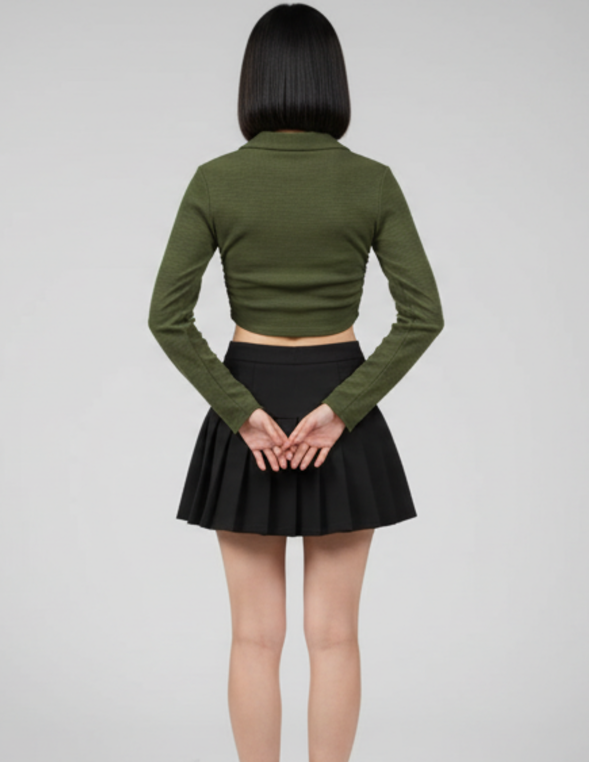 Este crop top verde plisado con botones delanteros combina estilo y comodidad, ideal para complementar looks casuales y sofisticados. Su diseño fresco y femenino destaca por el detalle plisado que aporta textura y movimiento, mientras que los botones ofrecen un toque funcional y estético. Perfecto para combinar con jeans, faldas o pantalones de cintura alta, es una prenda versátil para cualquier guardarropa. Hashtags: #CropTopVerde #ModaFemenina #EstiloPlisado #Tendencias2025 #LookCasualChic #BocaRosa