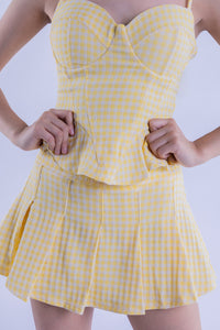 Esta mini falda amarilla es una prenda vibrante y con estilo que aportará un toque de alegría y modernidad a tu guardarropa. Su diseño se caracteriza por un patrón cuadrado (o a cuadros), que puede variar desde cuadros pequeños tipo vichy hasta cuadros más grandes y definidos, creando un efecto visual dinámico y atractivo. Con su corte mini, que llega por encima del muslo, es perfecta para lucir las piernas y un estilo juvenil. Confeccionada en un tejido que permite una caída estructurada, esta falda es ideal para looks casuales y preppy, combinando a la perfección con tops básicos, blusas o camisetas para un atuendo fresco y llamativo.