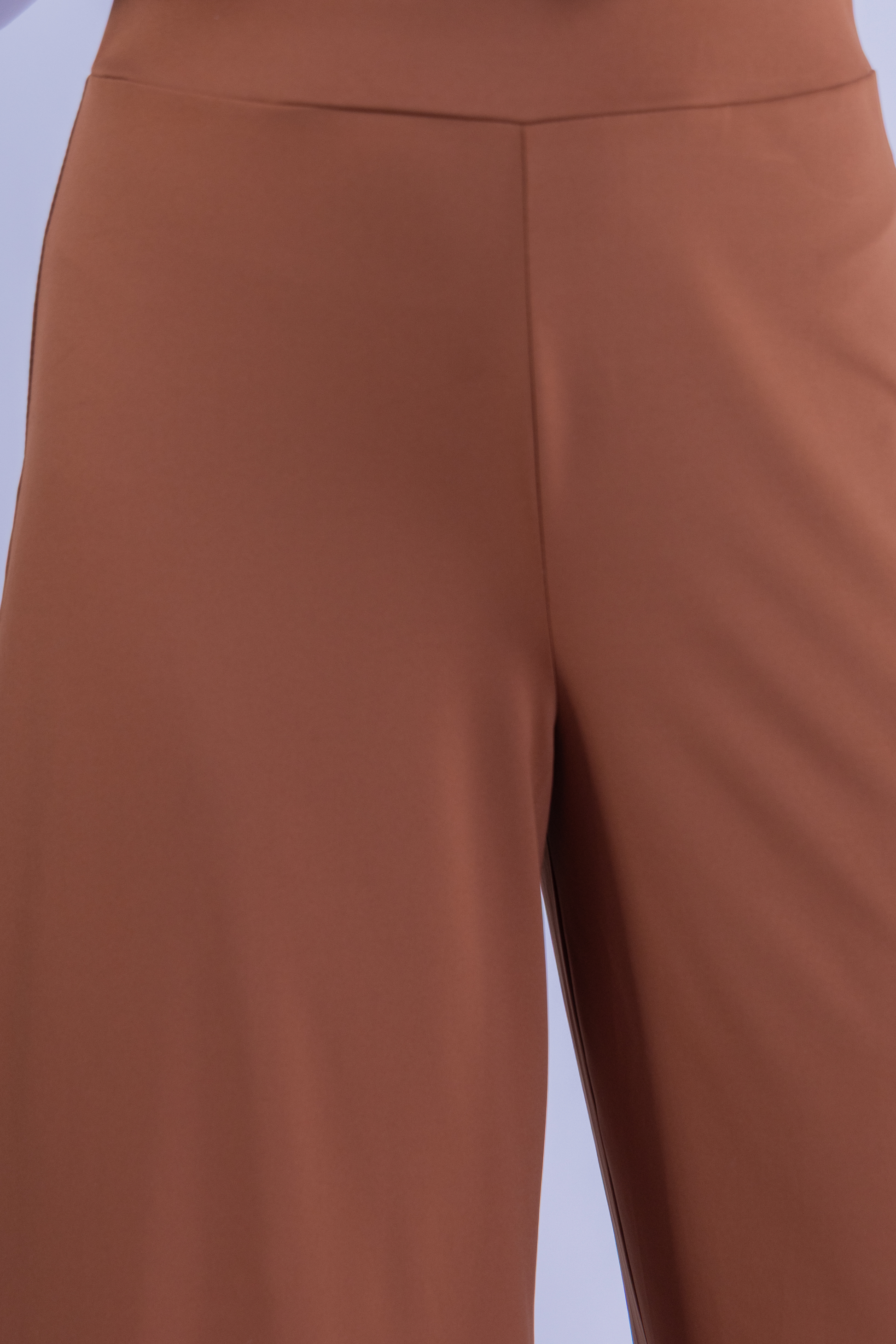 Pantalón liso de campana con ajuste en la cintura y piernas anchas a partir de la rodilla. Su diseño atemporal es ideal para crear looks con un toque retro y sofisticado. Está confeccionado en una tela cómoda y con caída, ideal para usar en cualquier ocasión, desde un evento casual hasta una salida con amigas.