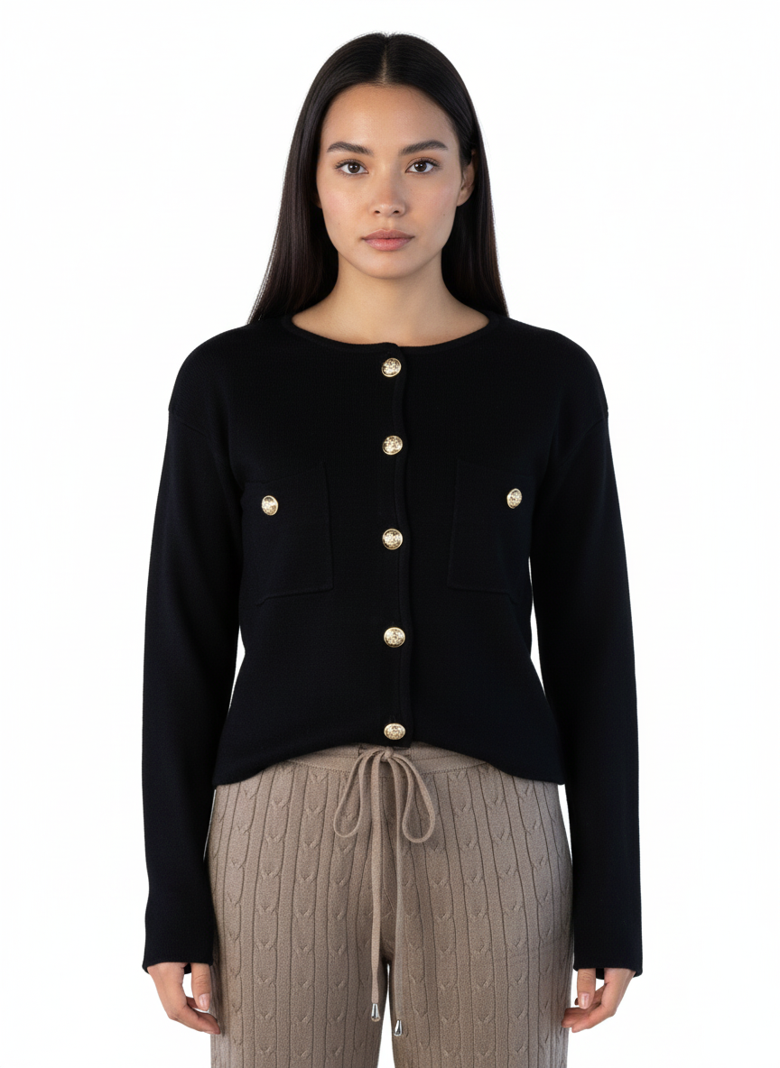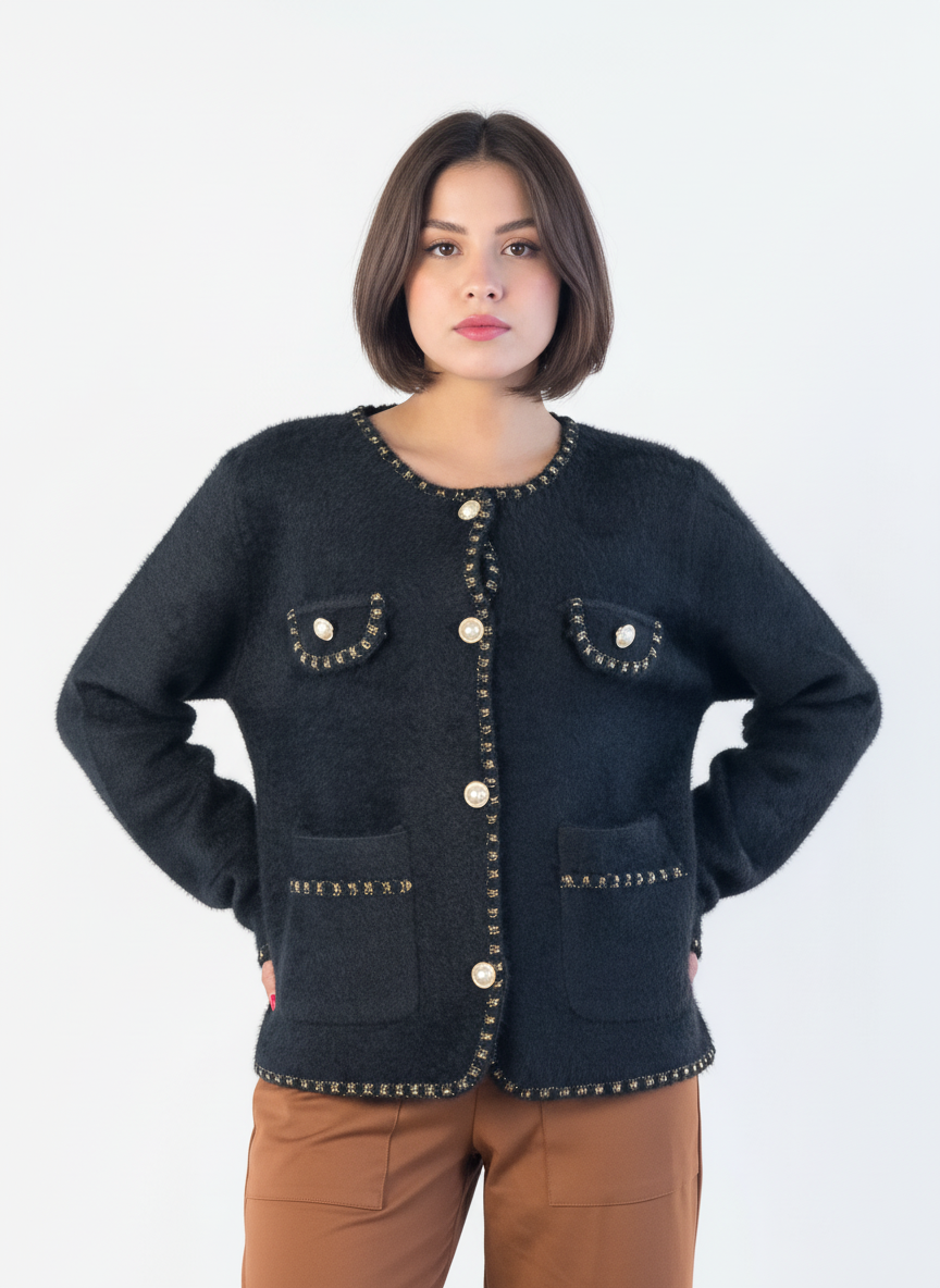 Este saco abotonado ofrece una sensación cálida y cómoda, ideal para días frescos. Sus botones aseguran un cierre seguro y práctico sin sacrificar el estilo. Perfecto para complementar cualquier outfit con un toque clásico y funcional. #EstiloCalientito #SacoAbotonado #ModaConfort
