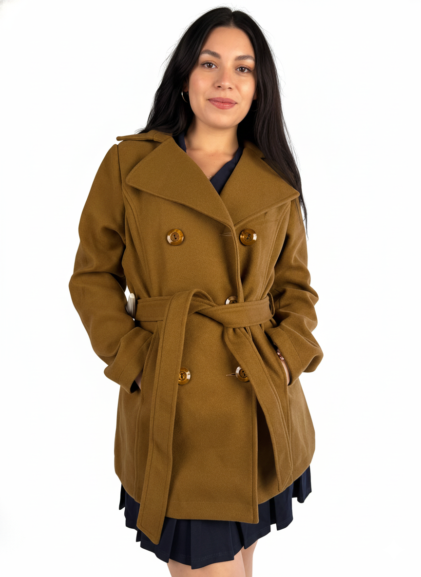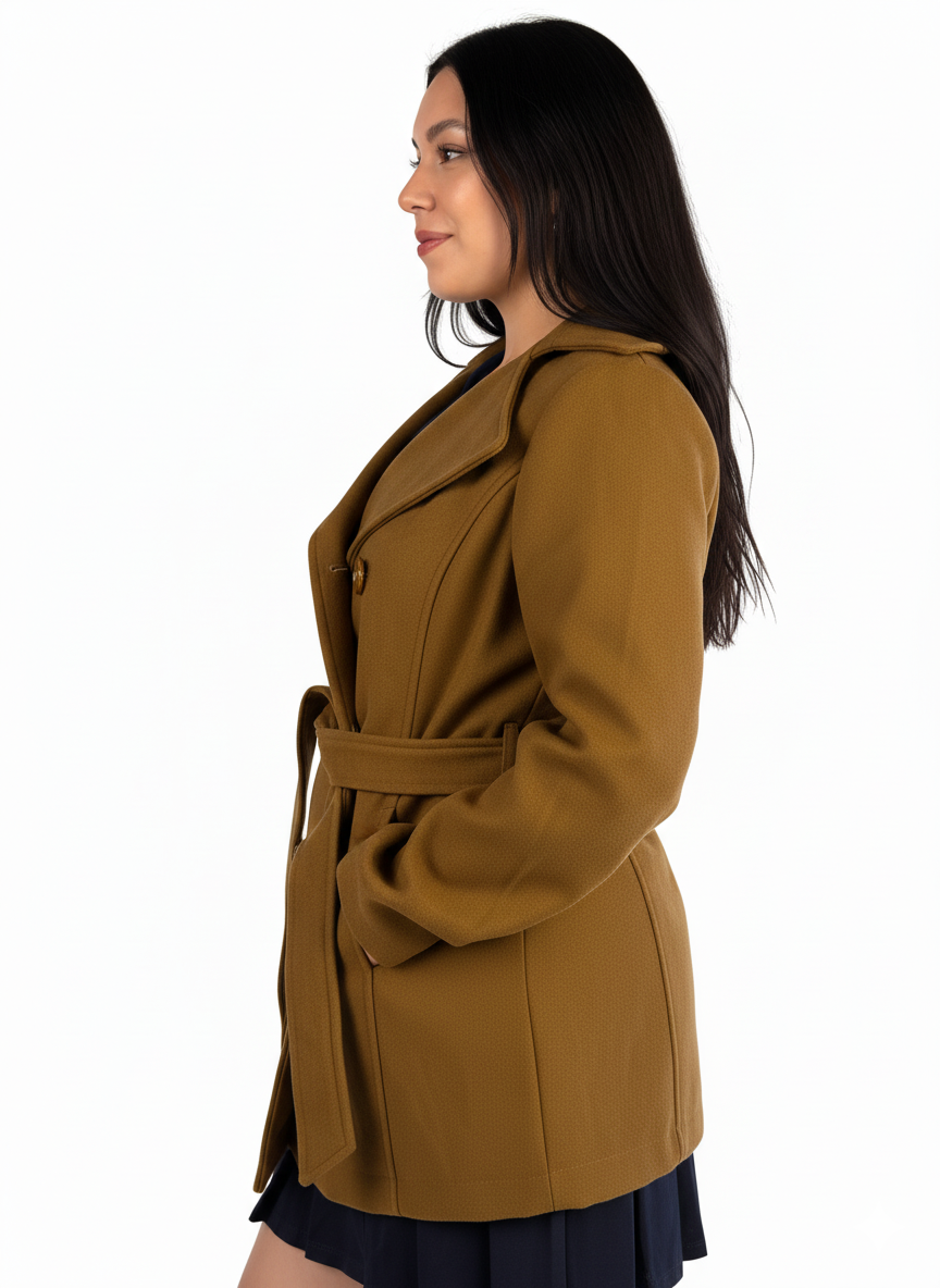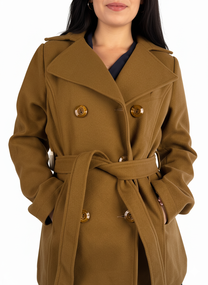 Este saco café abotonado largo con cinturón combina elegancia y funcionalidad. Su diseño alargado estiliza la figura, mientras que el cinturón permite ajustar la prenda a tu medida para un look sofisticado y cómodo. Ideal para ocasiones formales o para elevar tu estilo diario con un toque clásico y moderno. #SacoCafe #EstiloConCinturón #ModaElegante #LookProfesional