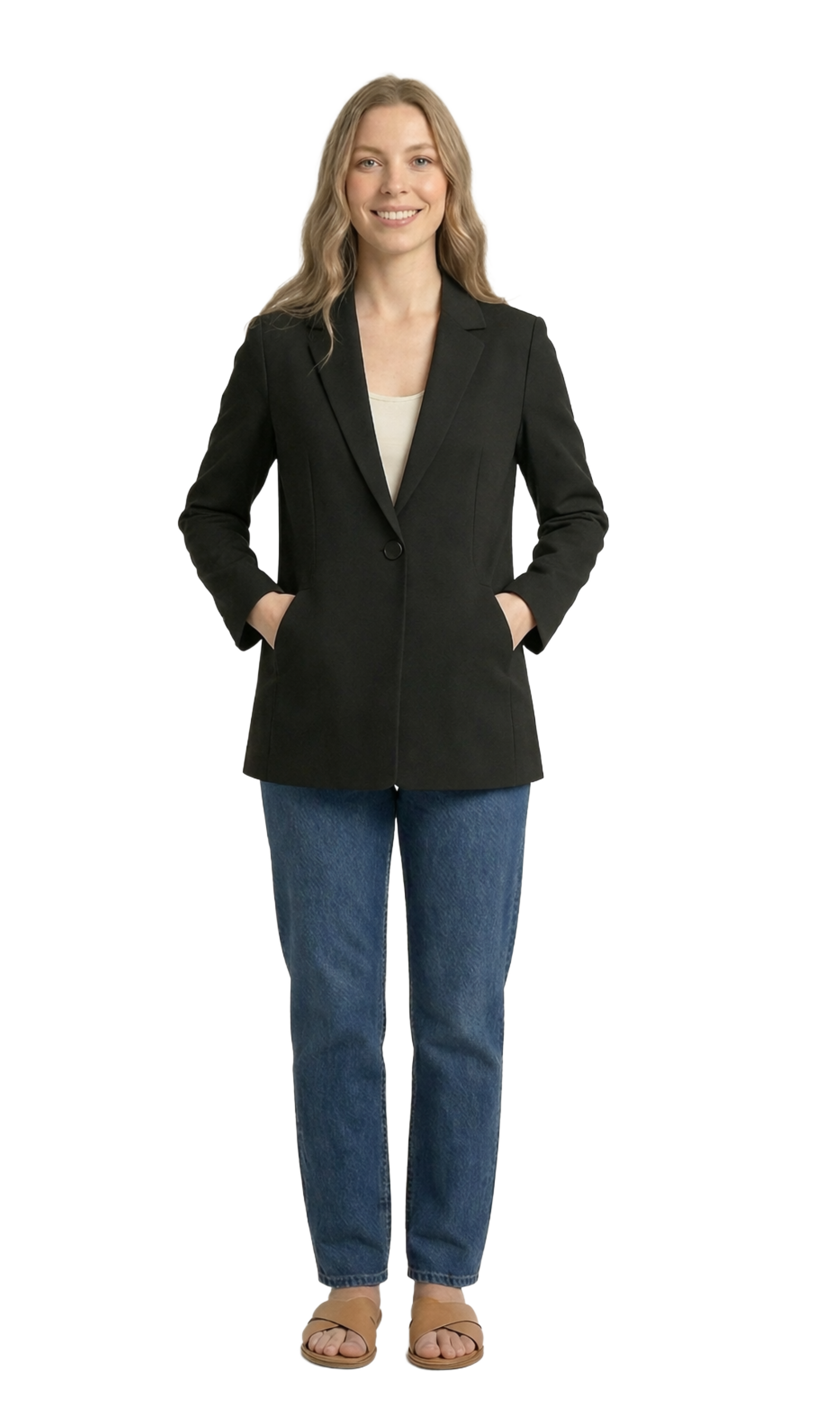 Saco negro de un botón tipo oversize