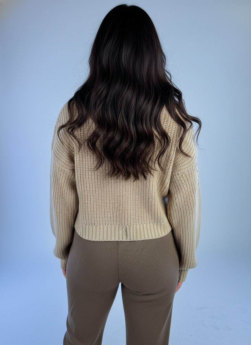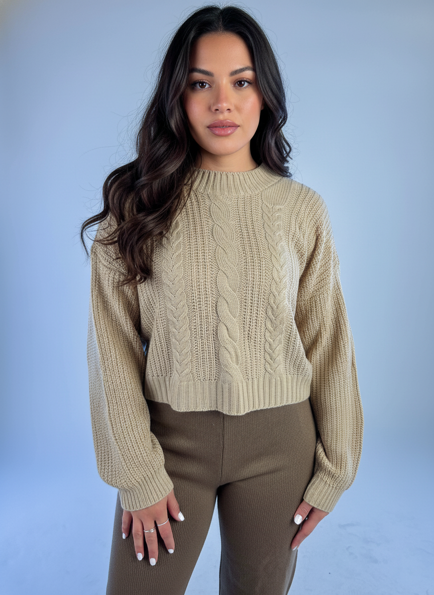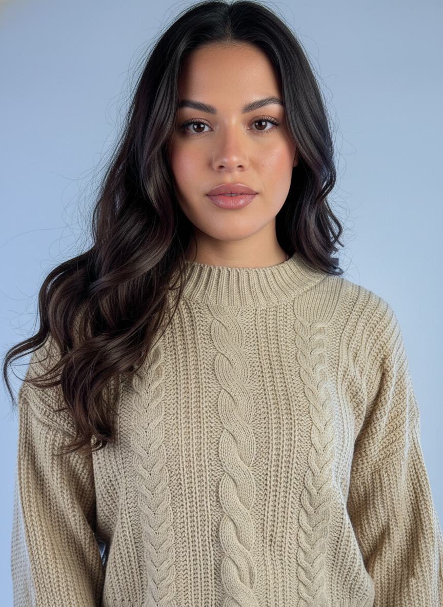Suéter beige tejido con trenzas que combina elegancia y confort en una sola prenda. Confeccionado con técnica de tejido tradicional, presenta un patrón de trenzas que añade textura y sofisticación. Su tonalidad beige neutral se adapta a cualquier estilo, permitiendo múltiples combinaciones en tu guardarropa. Ideal para capas en climas templados o como pieza principal en días frescos. Versátil y atemporal, este suéter es una inversión en prendas de calidad que perduran en el tiempo. #SuéterBeige #TejidoConTrenzas #ModaConfort #PrendaVersátil #EstiloNeutral #SuéterElegante #TejidoTradicional #ModaFemenina #BocarosaStyle #PrendaAtemporal