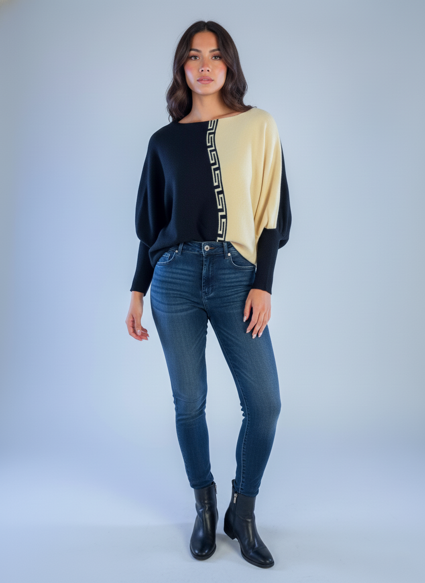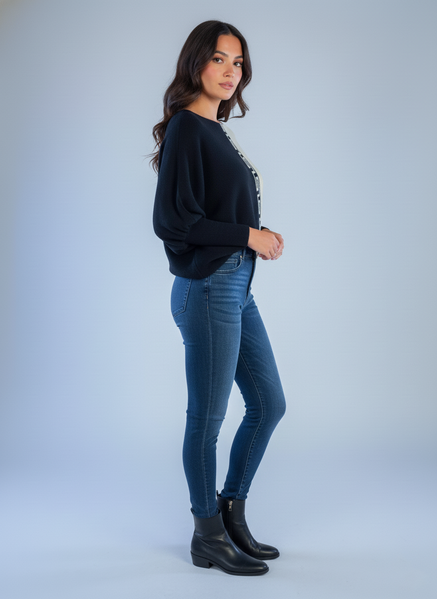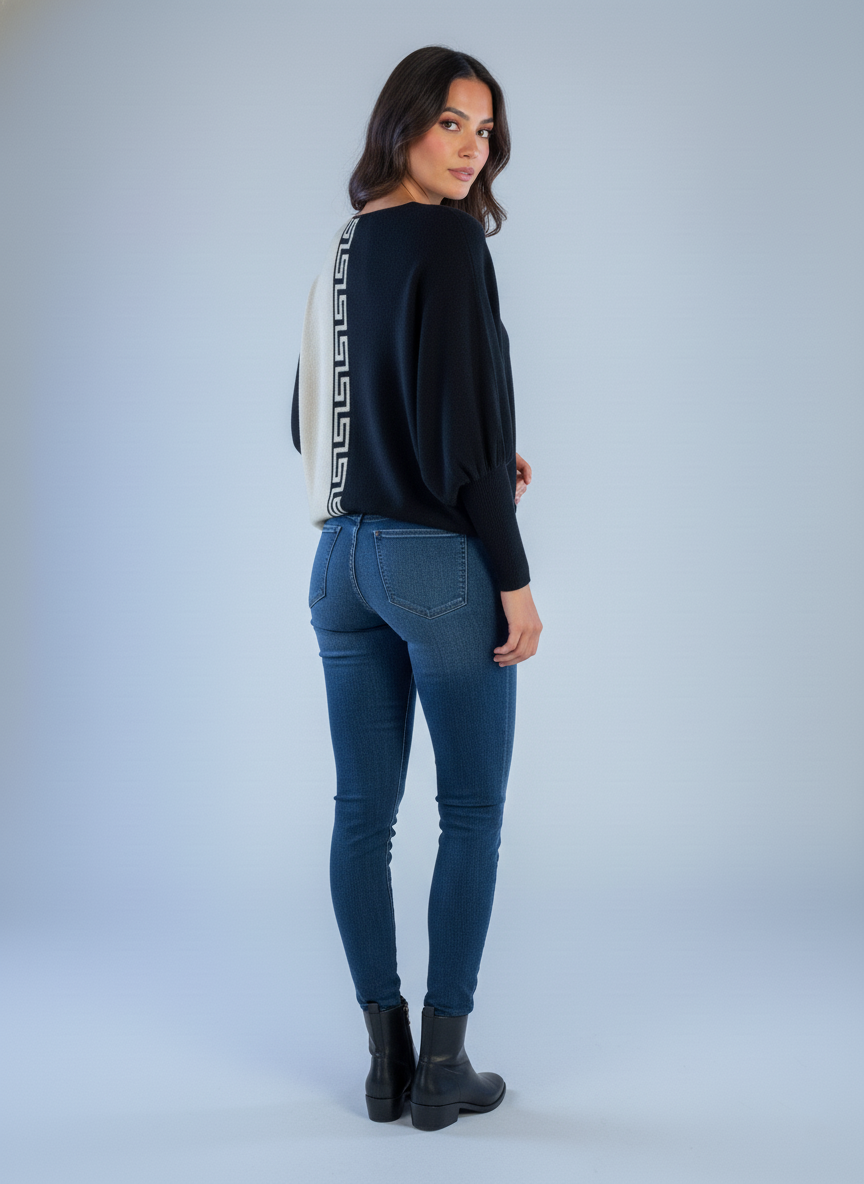 Suéter negro bicolor manga larga de semiglobo que combina elegancia y comodidad. Diseñado con mangas tipo semiglobo que añaden volumen y movimiento, perfecto para crear looks sofisticados. La combinación bicolor en tonos negros proporciona versatilidad para combinar con diferentes prendas. Ideal para ocasiones casuales o semi-formales, este suéter es una pieza versátil que eleva cualquier guardarropa. #SuéterNegro #MangaSemiglobo #BicolorChic #SuéterMujer #ModaFemenina #PrendaVersátil #EstiloElegante #SuéterInvierno #ComfortStyle #LookSofisticado