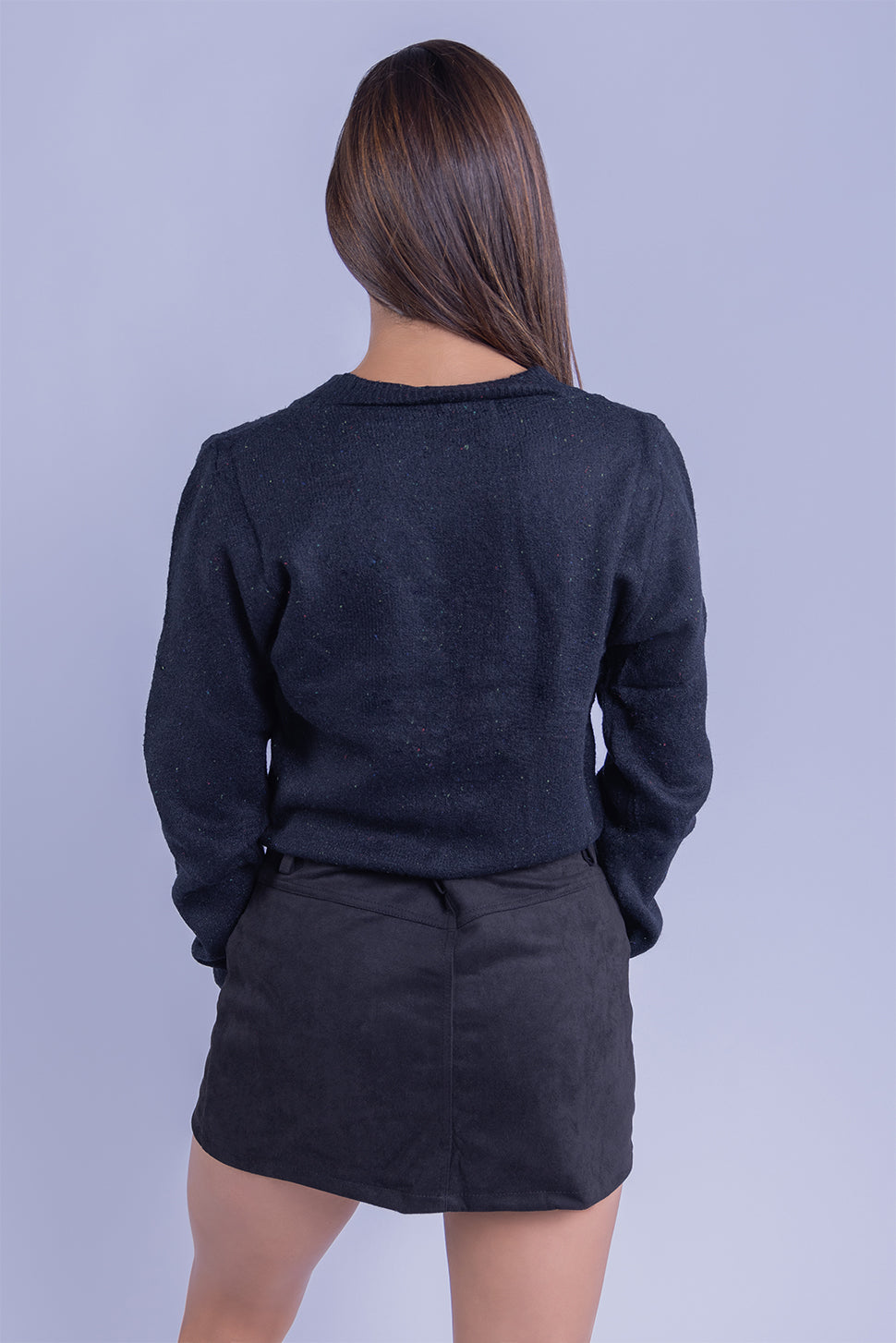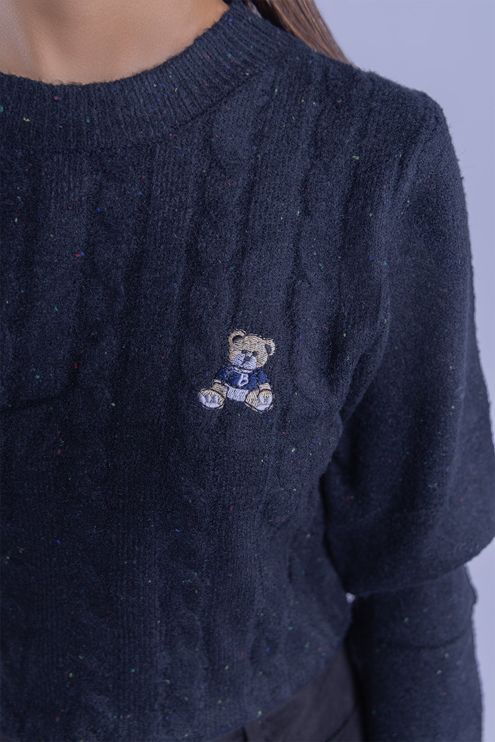 Este suéter negro destaca por su bordado delicado de un osito, que aporta un toque de ternura y estilo sutil. Confeccionado en un tejido suave y cómodo, es ideal para mantener el calor sin renunciar a la elegancia. Su diseño clásico combina fácilmente con diferentes prendas, convirtiéndolo en una pieza versátil para cualquier guardarropa. Perfecto para quienes buscan un equilibrio entre comodidad y detalle artesanal.